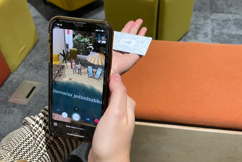 The goal was to develop an interactive way to present the Surf Studio of ČSOB at the event in Prague. The solution was creating business cards and smart posters with augmented reality features. After scanning these two objects, the AR feature displays two avatars in a beach environment, explaining Surf Studio.